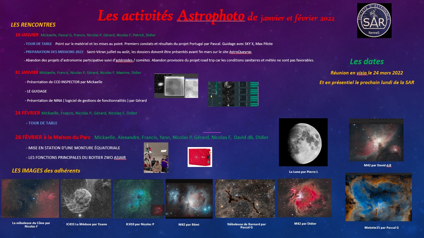 Voici quelques informations sur les activités et réalisations du groupe Astrophoto pour les mois de janvier et février 2022