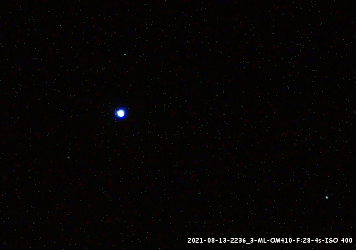 Près de Jupiter, en réalisant quelques clichés au boitier OM 410, j'ai remarqué un aspect inhabituel de la planète à la focale de 28mm F/3,5.